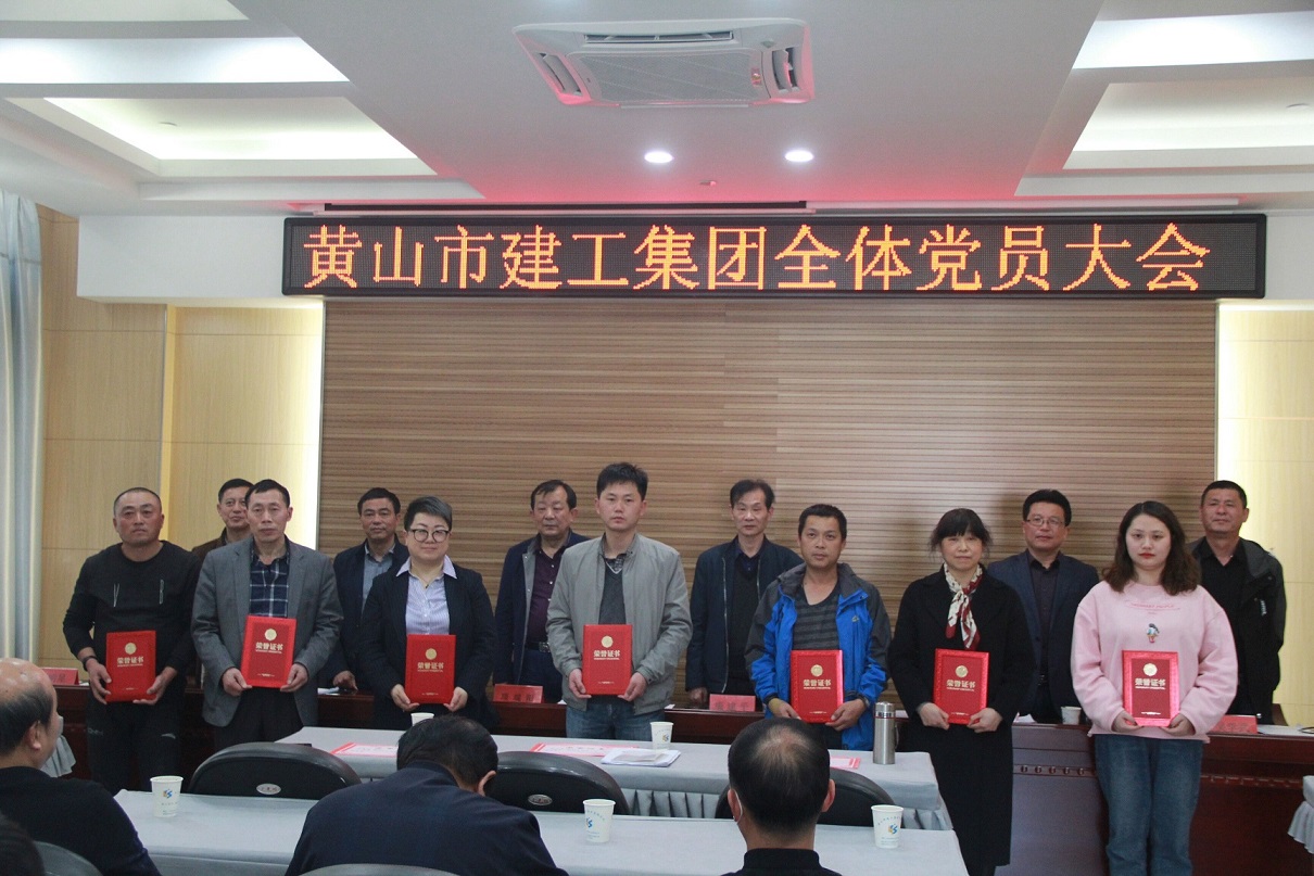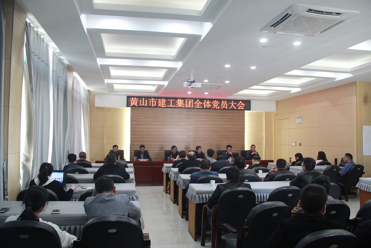 黃山市建工集團黨總支于2020年4月16日下午在集團公司11樓會議室召開全體黨員大會。參加會議的有市級黨建指導員康建平、集團黨總支班子成員及全體黨員,共56名。會議由黨總支副書記汪明星主持。