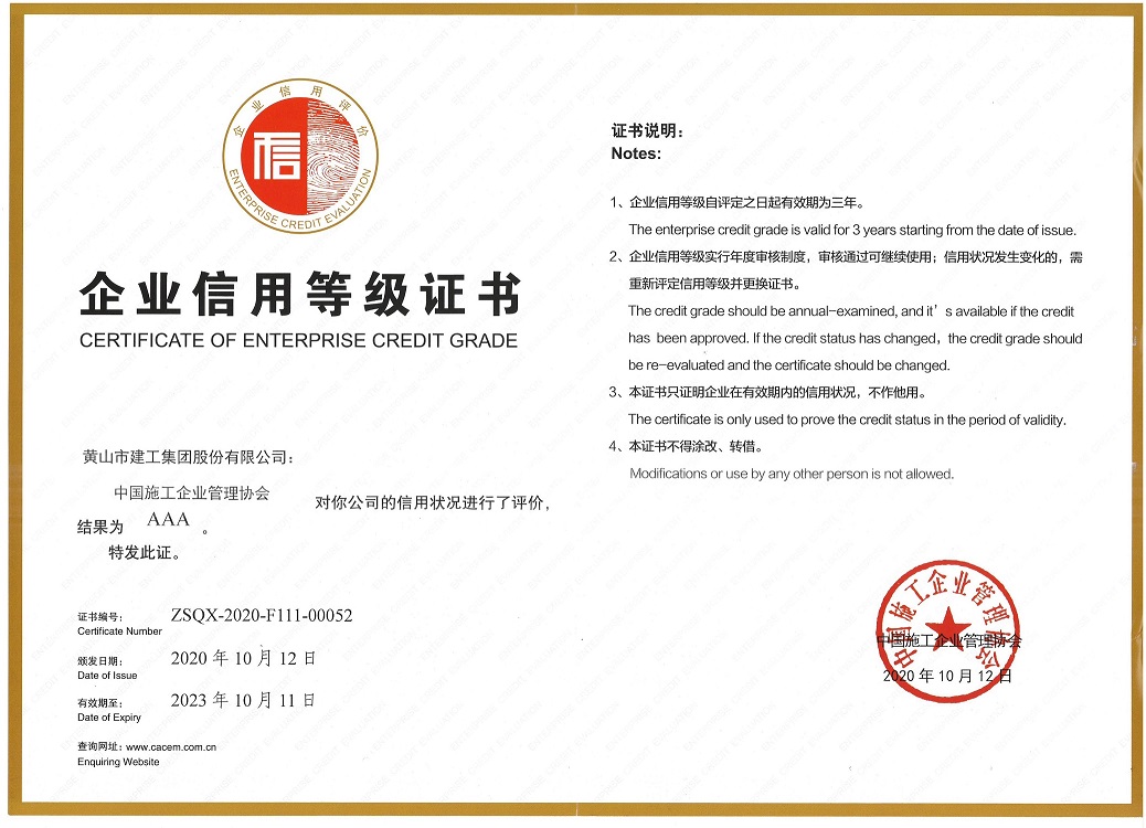 榮譽的獲得,是對黃山建工集團(tuán)近年來信用體系建設(shè)工作的充分肯定,公司將進(jìn)一步規(guī)范管理,增強誠信意識,守信踐諾,為工程建設(shè)行業(yè)的持續(xù)健康發(fā)展做出新貢獻(xiàn)。