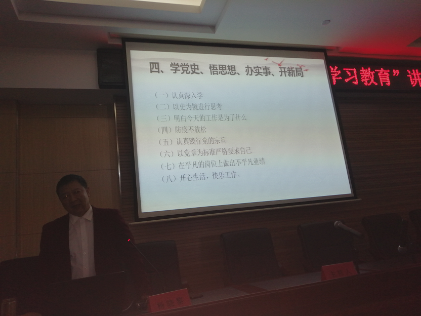 動(dòng)員結(jié)束后,緊接著由市委黨校楊曉黎教授為我們作了精彩的“黨史學(xué)習(xí)教育”專題報(bào)告。楊教授為我們解讀了中國(guó)共產(chǎn)黨由誕生、發(fā)展、壯大到建立新中國(guó),以及帶領(lǐng)全國(guó)人民建設(shè)小康社會(huì)艱難而輝煌的革命歷程。同時(shí)楊教授也結(jié)合自己對(duì)黨史的研究體會(huì),以豐富的史實(shí)、鮮明的觀點(diǎn)、精辟的語(yǔ)言,向我們闡述了中國(guó)共產(chǎn)黨100年艱苦卓絕的風(fēng)雨歷程,總結(jié)出沒(méi)有共產(chǎn)黨就沒(méi)有新中國(guó)的偉大真理。報(bào)告深入淺出、內(nèi)容豐富,對(duì)我們加強(qiáng)黨的歷史和思想政治理論學(xué)習(xí),進(jìn)一步提高黨性修養(yǎng),具有很強(qiáng)的理論指導(dǎo)作用。報(bào)告很受教育,很受啟發(fā),收獲很大。會(huì)議最后,集團(tuán)總支副書記汪明星要求廣大黨員干部認(rèn)真學(xué)習(xí)領(lǐng)會(huì),掌握實(shí)質(zhì),以飽滿的工作熱情和扎實(shí)的工作作風(fēng),認(rèn)真履行職責(zé),努力工作,為公司的發(fā)展壯大貢獻(xiàn)力量。
